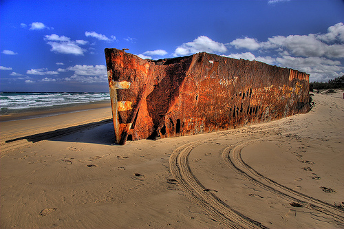 Bangkai kapal lain yang menarik di pantai Queensland adalah Chrry Venture (more info). Sayangnya saat ini sudah dipindahkan.